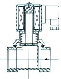 當(dāng)電磁線圈通電后,在電磁力的作用下,吸起鐵芯打開閥口,斷電后在彈簧及動鐵芯用重力作用下關(guān)閉閥門。